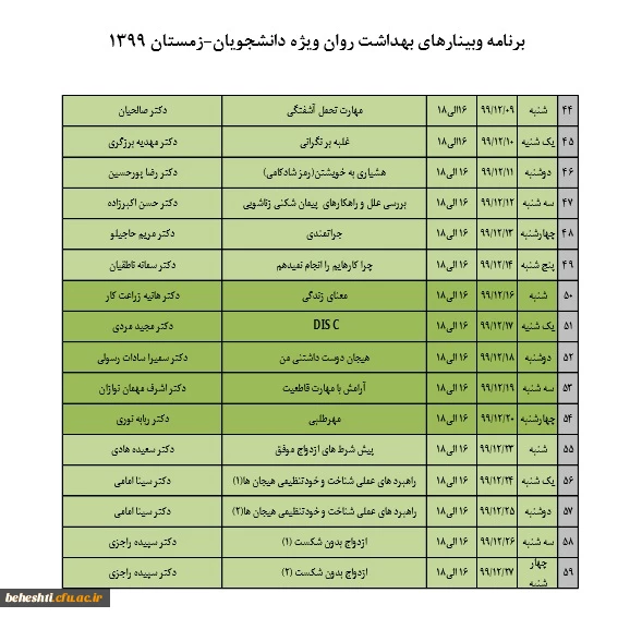 جدول دروس رشته های کارشناسی پیوسته