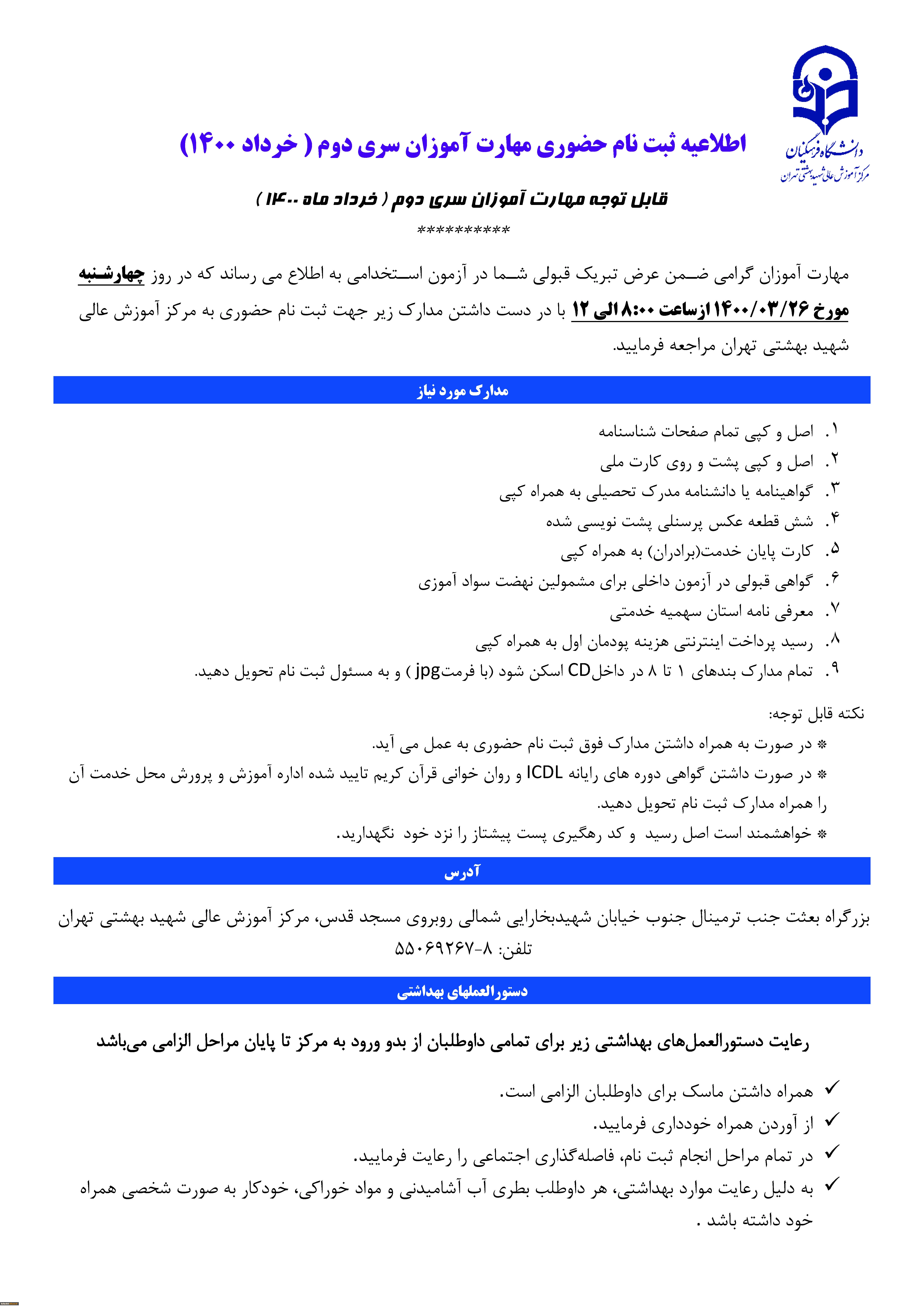قابل توجه مهارت آموزان سری دوم ( خرداد ماه 1400 ) 2