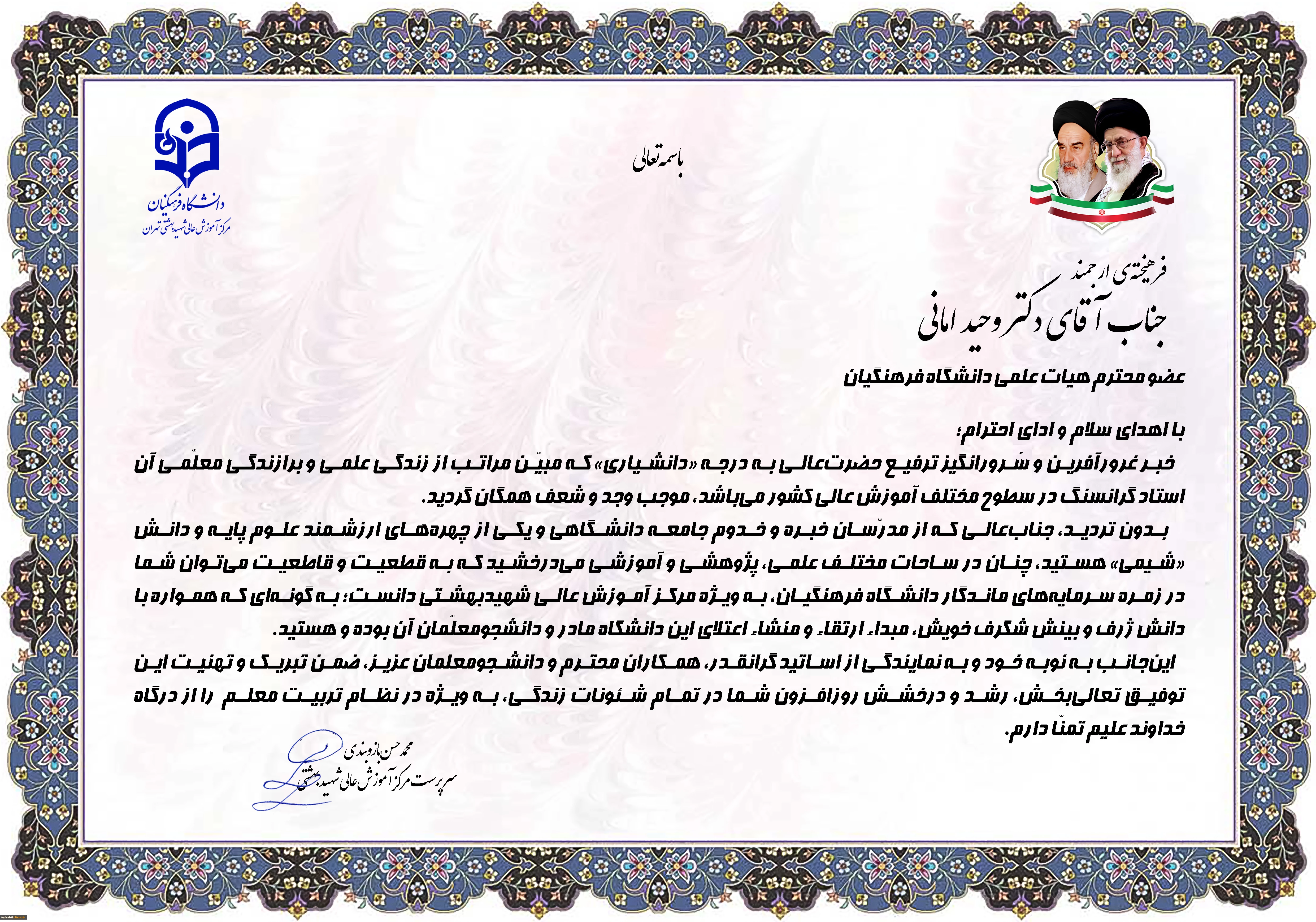 تبریک سرپرست مرکز آموزش عالی به استاد فرهیخته آقای امانی 2