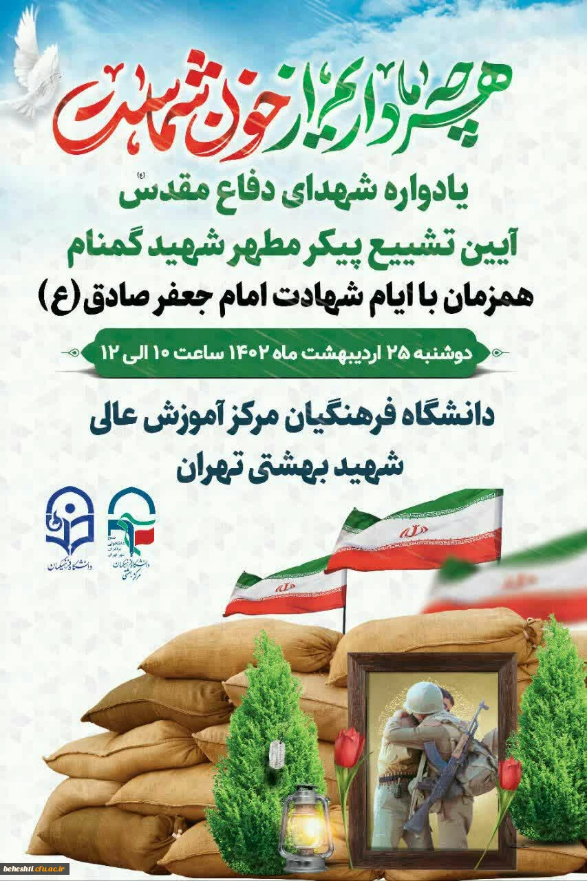امتیاز دهید : برگزاری اولین یادواره شهید گمنام در مرکز شهید بهشتی 2 یکشنبه 24 اردیبهشت 1402 ساعت 15:39
