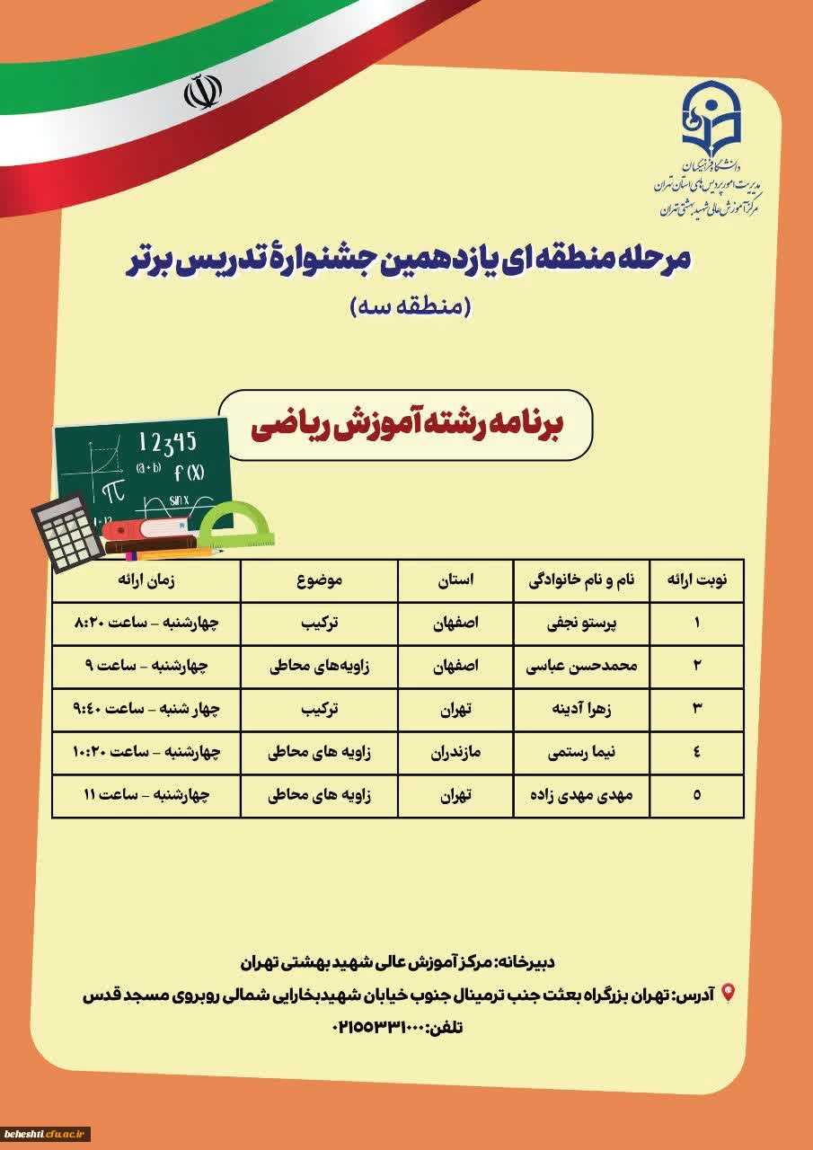 امتیاز دهید : برنامه حضور رشته ها در مرحله منطقه ایی یازدهمین جشنواره تدریس برتر 4 دوشنبه 7 خرداد 1403 ساعت 9:26